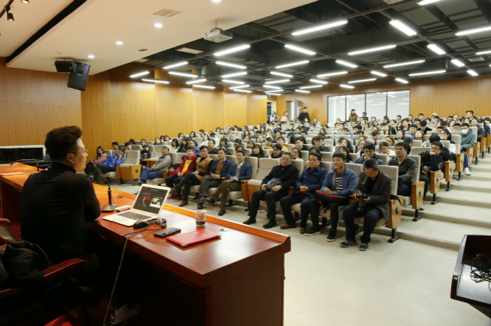 讲座中,白燕升以艺术的审美为引,深刻结合自己从事艺术行业三十余年来的所见所闻所感,讲述了艺术的本质是呈现美与艺术的“继承与发展”。现场,50岁的白燕升以经典传世戏曲佳作为切入点,将马兰、杨俊等黄梅戏大家的传奇人生娓娓道来,融入传统文化内涵,分享了“博学慎思、修德储才”的感悟。