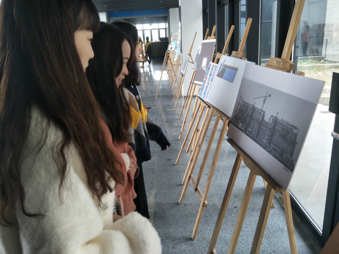 学院基建办主任、总务处处长刘长华,保卫处处长陈雪峰,新闻播音系主任助理张井水和党委宣传部、新闻播音系部分老师现场观看了艺术展。艺术展主创人之一陈威热情向观看摄影展的师生介绍了作品背后的故事和创作意图。走过影像艺术长廊,刘长华感慨道,学生是学院校园建设的直接见证者,学院建设在困难中前行,每一个单体的竣工验收、投入使用都值得用影像加以记忆。刘长华表示,明年春天,待到山花烂漫时,学院将组织摄影比赛等系列活动,展现新校区建设的成果和艺术院校师生的精神面貌。