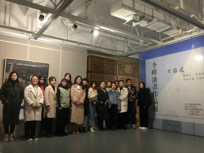 11月25日上午,安徽大学艺术与传媒学院美术设计系18级绘画专业学生在安徽时代美术馆观看李峰油画作品展及王克举学术讲座。此次活动由王力平老师带队。
