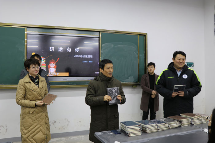 最后,老师和现场工作人员分别为考研学子送上带有学校标识的笔记本,以示激励、期盼。(殷 俊 杨 溢)