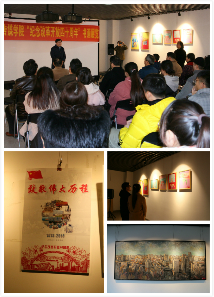 为庆祝改革开放40周年,12月20日,“庆祝改革开放四十周年”党员书画展在美术搂二楼展厅隆重开幕。学院党委书记、院长周之虎,副院长张晶、张建华和有关部门负责人出席开幕式。