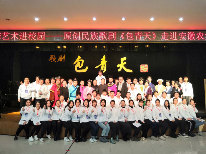 为深入学习贯彻党的十九大精神,根据省教育厅关于“高雅艺术进校园”活动安排,2018年12月26-28日,由安徽大学艺术与传媒学院组织创演的原创歌剧《包青天》成功走进合肥工业大学、安徽中医药大学和安徽农业大学。