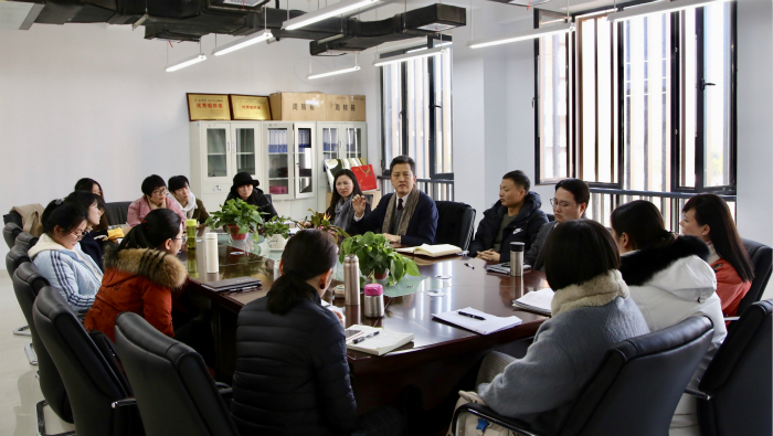 聘任仪式开始前,新闻播音系全体教师与靳智伟教授在舞蹈楼208会议室举行学术交流座谈会,就青年教师的培养、教科研项目申报、教育教学方法、国内外产学研交流合作等领域进行了深入交流。