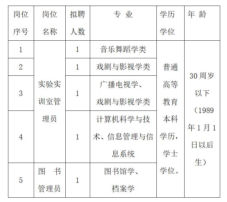 2019年上半年计划招聘教学管理工作人员5名。