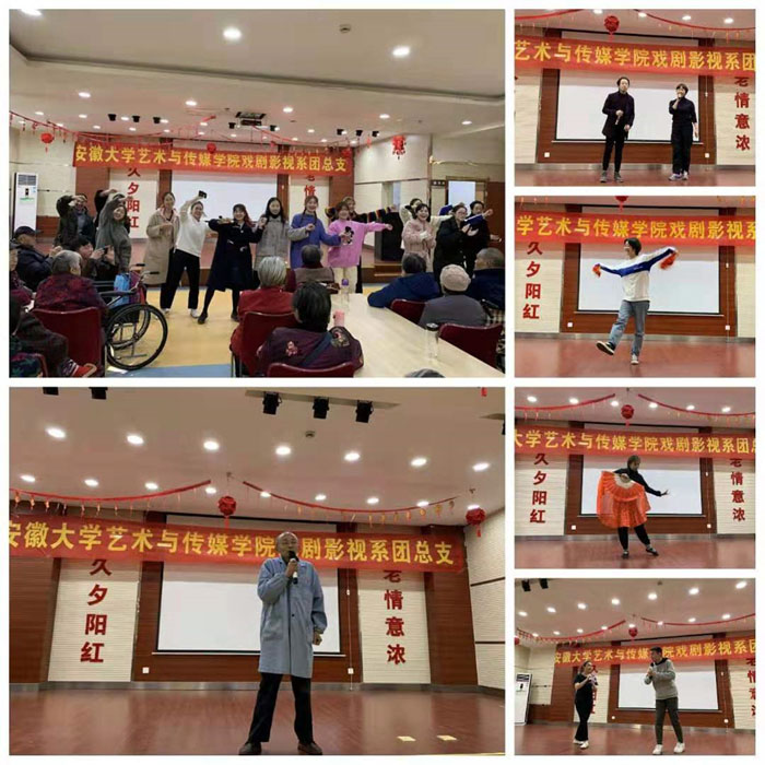 阳春三月,春意盎然。为践行社会主义核心价值观主题宣传,弘扬雷锋精神,倡导“奉献、友爱、互助、进步”的志愿精神,3月9日下午,戏剧影视系的志愿者们走进合肥市久久夕阳红老年城,不仅为老人们送去了丰富的慰问品,还用实际行动践行雷锋精神,与老人们度过了温暖的午后时光。
