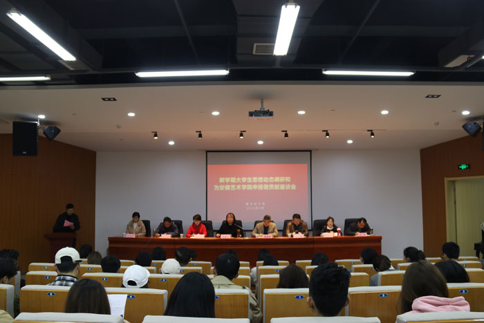3月15日上午9时,美术设计系新学期大学生动态调研会暨“我为安艺设置作贡献”座谈会在美术楼学术报告厅举行。系党总支书记、主任罗耀东,副书记张丽丽,副主任刘勇,学生管理办公室主任叶明胜,各班辅导员及学生代表参会。学院党委宣传部、教务处、学生处、团委、总务处、保卫处等职能部门的负责同志出席。