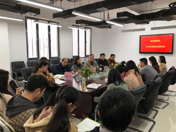 3月20日中午,新闻播音系大学生思想动态座谈会在舞蹈楼二楼会议室召开。学院党委委员、宣传部部长吴孔铎以及学院相关职能部门负责人、系相关部门负责人及各班辅导员、学生代表参加会议,会议由系学管办公室主任秦帅主持。