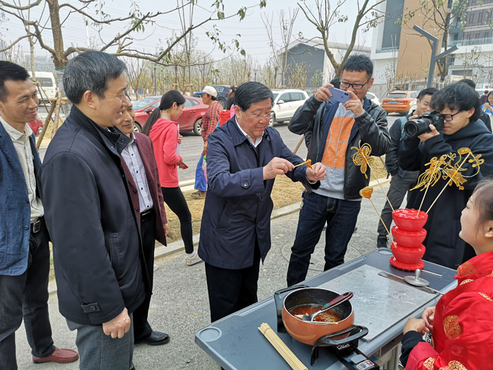 学院党委书记、院长周之虎,副院长张建华、组织部部长曹晓富和安徽省非遗保护中心副主任戴宝宽在团委老师们的陪同下观看了开幕式舞龙、舞狮表演,并欣赏各非遗展示项目。