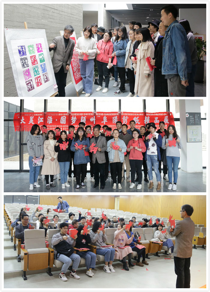 为传承民间剪纸艺术,弘扬中华优秀传统文化,由院学生处组织、美术设计系承办的“大美江淮,圆梦颍州”阜阳剪纸体验日活动于4月4日在美术楼报告厅举行。体验日当天,上百幅精美剪纸作品在美术楼一楼展览。本次活动还特邀被誉为“中国十大神剪”的阜阳民间艺术家葛庭友现场教学。