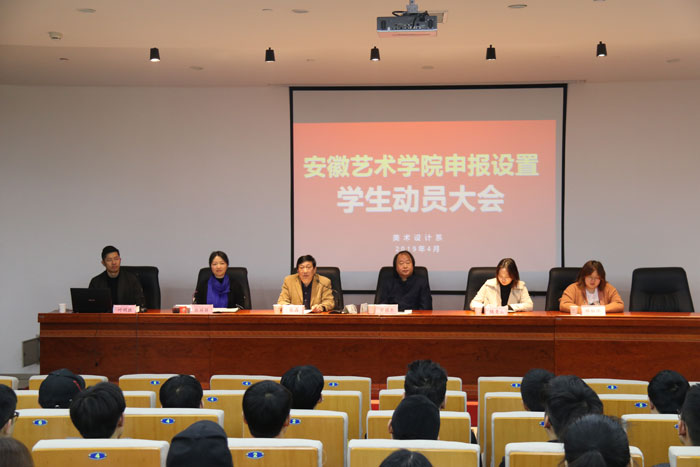 随着教育部专家组进校考察乐动网官网设置工作时间的临近,为凝聚全体师生的共识、提振精神面貌,4月3日,美术设计系在美术楼报告厅召开学院申报设置学生动员大会。学院副院长张晶、系党总支书记罗耀东、系党总支副书记张丽丽、系团总支书记魏曼云、学生党支部书记薛茹冰、各行政班级辅导员及全体在校生参会,会议由系学生管理办公室主任叶明胜主持。