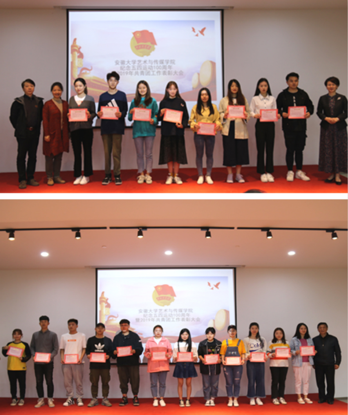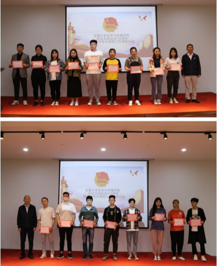 5月6日下午,美术楼学术报告厅内歌声嘹亮、激情飞扬,安徽大学艺术与传媒学院纪念五四运动100周年暨2019年共青团工作表彰大会在这里隆重召开。学院党委委员、副院长张晶、程世锁、张建华等领导出席会议,各系党、团组织负责人,相关部门负责人和一百多名受表彰的团员青年参加大会。大会由校团委书记陈明主持。