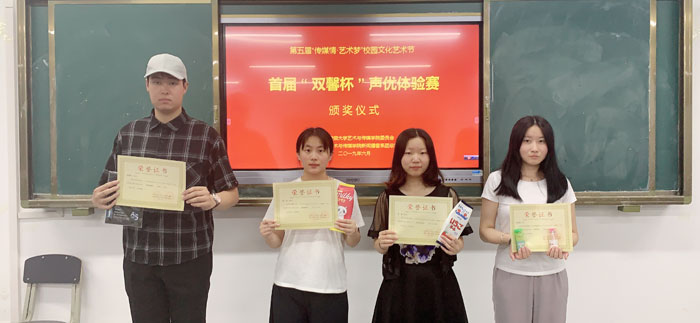 此次“双馨杯”声优体验赛不仅增强了学院各系间的沟通交流,丰富了同学们的课余生活,也充分展现了艺传学子的专业水平。据悉,此次“双馨杯”声优体验赛经过网络投票共评选出一等奖2名,二等奖2名,三等奖3名。(黄梅/文 吴浩/图)