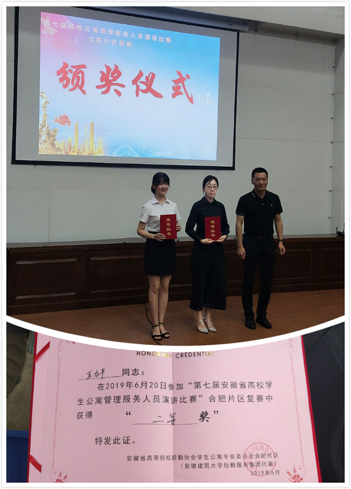 6月20日,美术系教师、总务处干事王力平代表我院公寓管理人员在安徽建筑大学参加第七届高校公寓管理服务人员演讲比赛合肥片区复赛,以二等奖的好成绩充分展示了最美安艺公寓管理人员的形象。