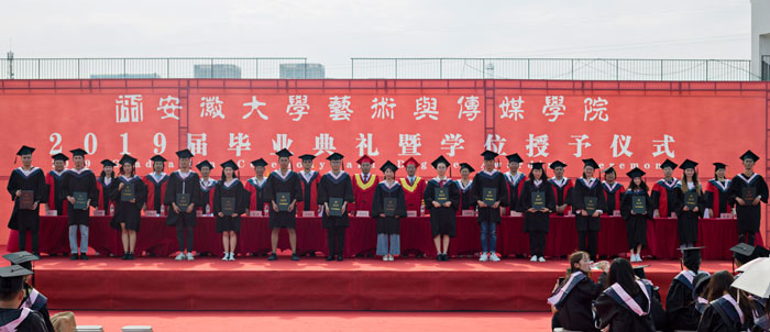 7月3日,安徽大学艺术与传媒学院2019届毕业典礼暨学位授予仪式在学院体育场隆重举行。安徽大学党委副书记、学院党委书记、院长樊嘉禄,安徽大学副校长薛照明,学院党委副书记沈端良,副院长张晶、程世锁、张建华,安徽大学学位评定委员会办公室主任王春知出席典礼。典礼暨学位授予仪式由张建华主持。