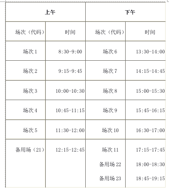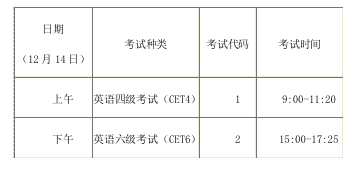 英语四级口语考试(CET-SET4)考试时间为11月23日,英语六级口语考试(CET-SET6)考试时间为11月24日,考点名单如下:中国科学技术大学、安徽大学、安徽师范大学、安徽农业大学、安徽工业大学、安徽理工大学、安徽中医药大学、蚌埠医学院、阜阳师范学院、合肥师范学院、淮南师范学院。具体场次安排如下: