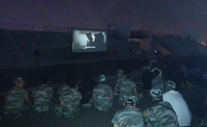 9月24日晚七点半,学院组织全体军训学生在运动场参与爱国主义影片《建军大业》观看暨合肥市庆祝中华人民共和国成立70周年优秀电影展映活动。
