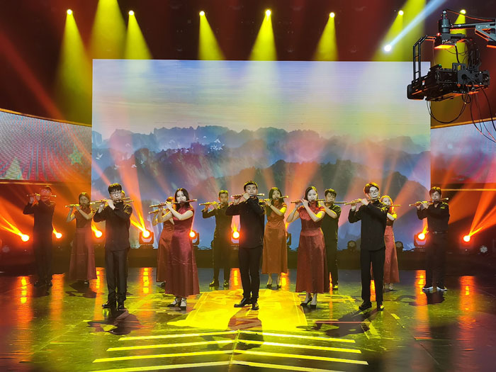 弘扬传统文化,坚持文化自信。为庆祝中华人民共和国成立70周年,由安徽广播电视台综艺频道和安徽省民族管弦乐学会联合主办的《国乐有传人》青少年民族器乐音乐会电视展演暨第二届“金杜鹃奖”民族器乐大赛颁奖典礼于9月22日晚在安徽广播电视台演播厅顺利完成录制。学院国乐团在本次演奏会上圆满完成了合奏《我和我的祖国》及竹笛重奏《北京有个金太阳》两首曲目的演出录制工作。