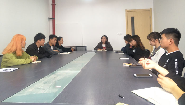 10月11日,美术设计系团总支在美术楼318教室组织召开国庆阅兵式观感座谈会。系团总支书记魏曼云、团总支委员及2019级各班新生代表参会。