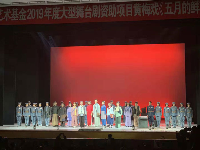 《五月的鲜花》系安徽演艺集团创排出品的新编大型现代黄梅戏,入选国家艺术基金2019年度大型舞台剧资助项目。全剧讲述以顾重光、童华为主的一支新四军小分队兑换大江币过程中发生的故事,让社团成员深切感受到那一代人的信仰。