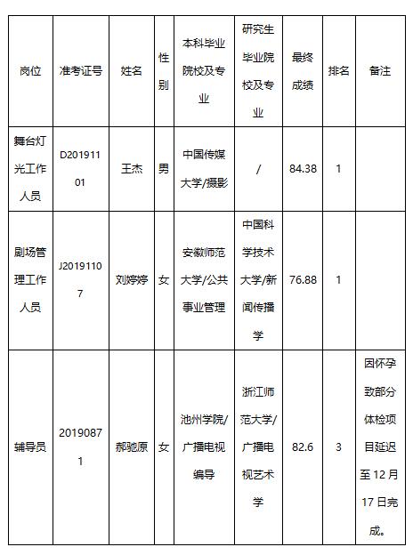 根据《2019年乐动网官网公开招聘艺术实践中心工作人员公告》《2019年乐动网官网公开招聘专职辅导员公告》的要求,经过资格审查、考核测试、体检考察等程序,学院拟聘用王杰等3位同志为工作人员,现予公示如下: