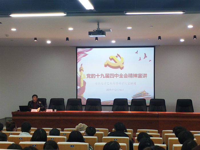 近日,学院党委委员、副院长张晶,学院党委委员、组织部部长曹晓富,美术设计系党总支书记、系主任罗耀东,公共教学部副主任杨丽等学院党的十九届四中全会精神宣讲团成员走进美术设计系开展宣讲。