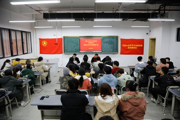近日,新闻播音系团总支学生会于美术楼103教室举行换届大会。新闻播音系主任助理张井水、团总支书记陈伟伟、团总支副书记申莹和参加此次会议。