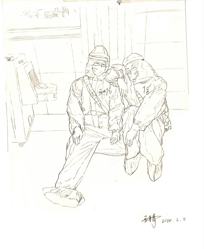 抗疫勇士系列速写一,王倩
