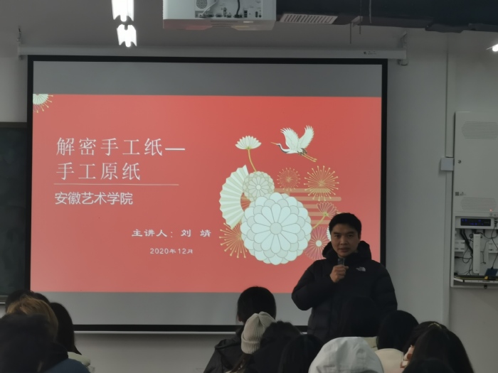 按照《中共安徽省委教育工委关于在全省高校组织开展新时代先进人物进校园 推进“英模·大师进思政课堂活动的通知》要求,为了发挥新时代先进人物的榜样示范作用,弘扬中华文化历久弥新的剪纸技艺与文化,12月23日下午,教务处和马克思主义学院联合邀请国家级非物质文化遗产代表性传承人、中国艺术研究院民间艺术创作研究员、高级工艺美术师、中国科学技术史学会传统工艺研究会理事刘靖教授进行“解密手工纸”专题讲座。