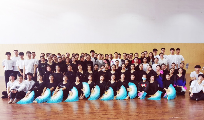 上午,金明在舞蹈楼进行实践课教学。我校20级舞蹈表演(专升本)全体学生、20级舞蹈表演班(本)男生及青年舞蹈教师参与此次大师实践课。实践课上,金明教授翥凤翔鸾,领着兰花时翾风回雪,领着鼓架子时发扬蹈厉,让参与大师实践课的师生大开眼界、受益匪浅。