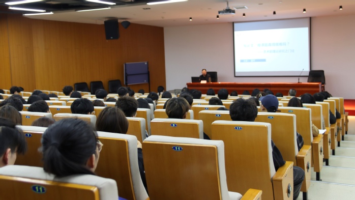 讲座围绕分析问题思路、研究现状梳理、研究目标与路径(思路)、研究内容、研究方法等方面展开,深入剖析什么是艺术的理论研究,并自然过渡到什么是学术论文、什么是科研课题。讲座同时为同学们指明方向,列出所必须具备的能力,即学科知识、研究能力。同学们听完纷纷表示受益匪浅,有助于自身思想的转变和论文撰写能力的提高。(撰稿:韩欣盈 摄影:焦同旭 初核:张丽丽 审定:束舒娅)