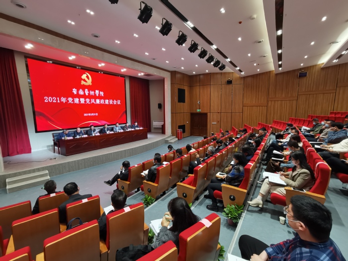 沈端良做2020年度学校党建暨党风廉政建设工作报告,报告全面回顾了学校2020年党建党风廉政建设情况:以党的政治建设为统领,不断强化理论武装;抓好巡视整改,建立健全长效机制;完成党建重点任务,增强基层组织活力;压实意识形态工作责任,提升阵地管理水平;落实全面从严治党主体责任,推进党风廉政建设。对2021年重点工作,沈端良指出要突出常态长效,确保巡视反馈问题改彻底改到位;开展党史学习教育,树立坚定理想信念;完善基层党组织体系,落实党建重点任务;加强干部自身建设,打造高素质干部队伍;探索“党建+艺术”融合模式,精心打造党建品牌;严守政治纪律规矩,落实党风廉政建设责任制。