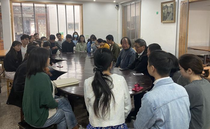 4月20日,我校美术设计系师生在皖南写生之际,组织学习研讨习近平总书记考察清华大学讲话的重要精神,全体带队教师及部分学生代表参加研讨。师生就习近平总书记发表的关于美术成果服务人民群众高品质生活需求、增强文化自信等讲话精神展开热烈讨论。