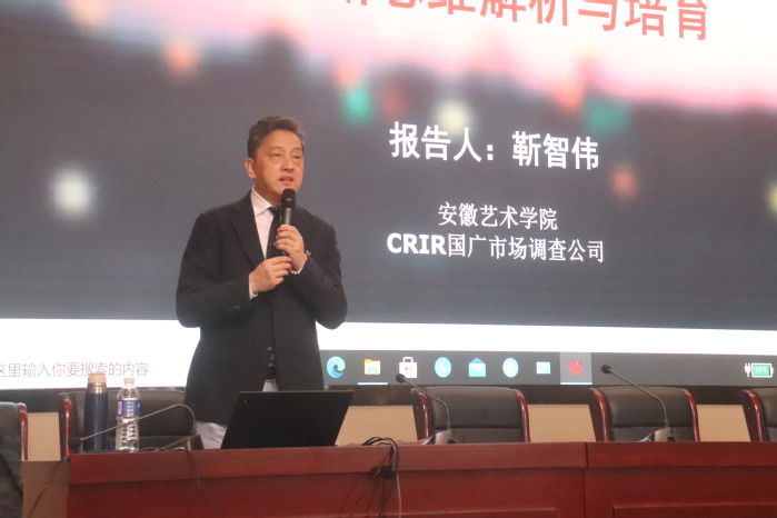 5月13日上午,新闻播音系举办的第19期“少荃湖传媒讲坛”活动在综合楼报告厅开讲,由我院特聘教授、央视市场研究股份有限公司专家组成员、高级研究员、媒介研究经理靳智伟就“创新思维解析与培育”这一主题进行了演讲分享。新闻播音系百余名同学和部分教师参加讲座。