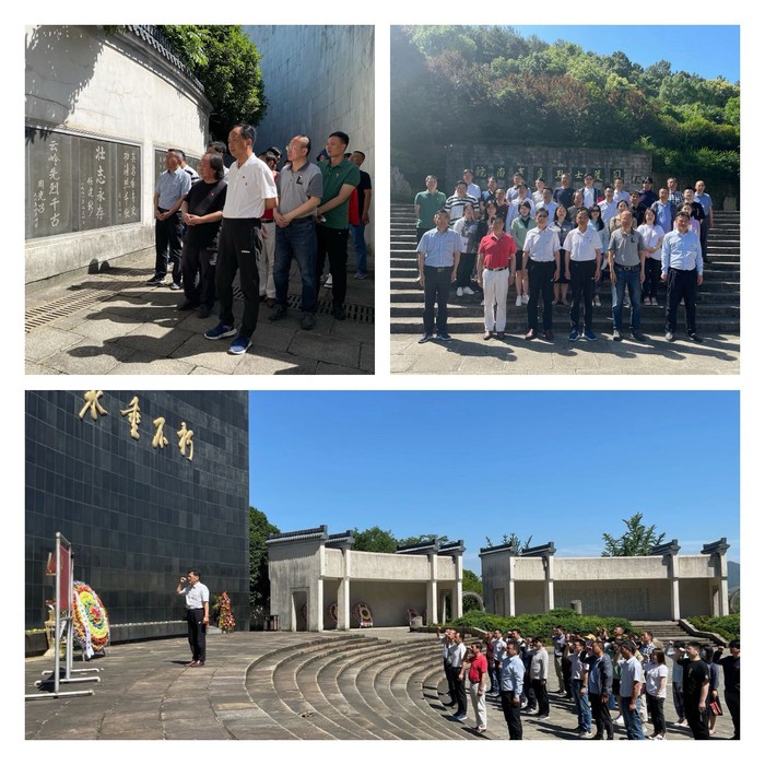 6月5日下午,专题读书班在皖南事变烈士陵园依次参观无名烈士墓、纪念廊等,在基地讲解员对皖南事变的介绍中,共同追忆老一辈革命者艰苦卓绝的战斗情景,切实感悟英雄先烈磅礴的精神力量。在主题广场,读书班成员代表向烈士敬献花圈,全体读书班成员在党务负责人沈端良的领誓中重温入党誓词。
