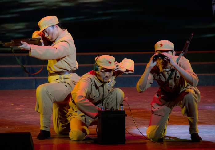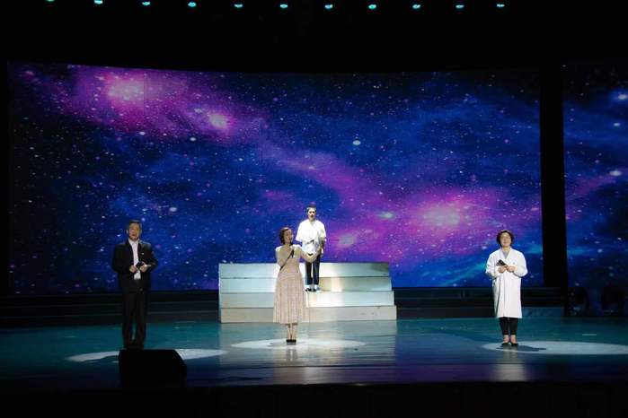 同样是家书,中共安徽省委第一任书记王步文牺牲前的绝笔信,选择了话剧片段的呈现形式,狱中临刑的实景与心中牵挂的虚景两个不同的时空得以巧妙转换,形成强烈的戏剧张力;“两弹元勋”邓稼先的家书,则以情景朗诵的方式呈现,以邓稼先妻子的口吻倾诉,将舞台主场景聚焦西北大漠,从而突出“干惊天动地事、做隐姓埋名人”的无私奉献。
