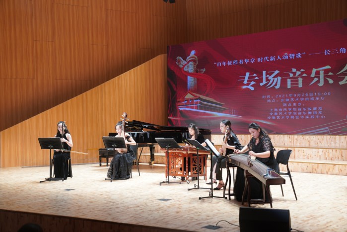 在国庆节前后,学校先后承办“传承红色基因 赓续革命精神”安徽省社科界庆祝建党百年书画展、长三角“百年征程奏华章、时代新人送赞歌”音乐党课等活动,在校内外引起广泛关注和热烈反响,掀起艺术感十足的鲜红浪潮。
