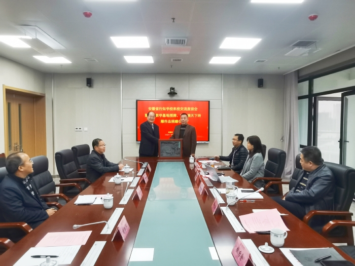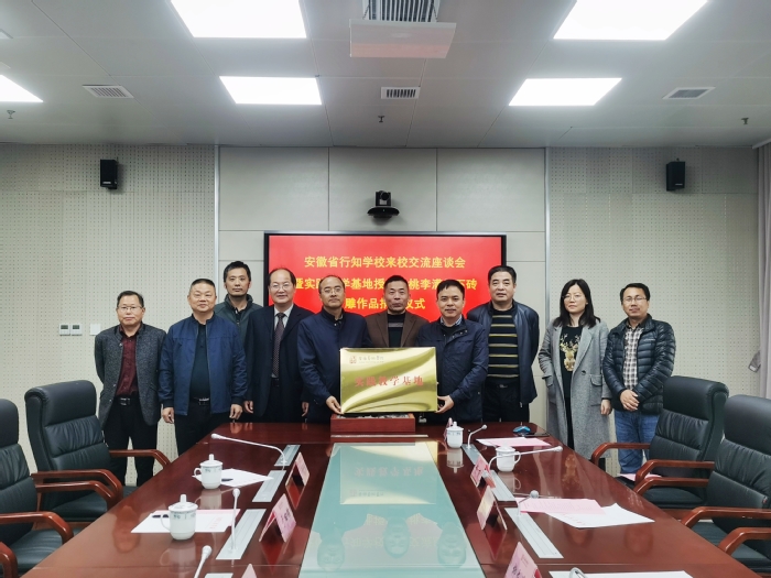 10月20日下午,学校与安徽行知学校共建非遗专业实践教学基地签约、授牌仪式在我校举行。党委副书记、院长樊嘉禄,副院长柳友荣,安徽省行知学校校长于曰锦、副校长张平等出席签约、授牌仪式。会议由教务处处长韩大国主持。