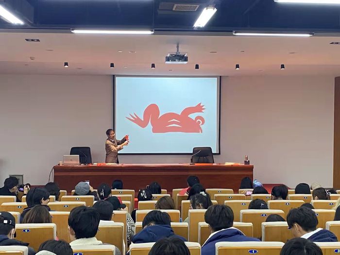 为丰富同学们的校园生活,感受传统文化的魅力,11月9日下午,由校团委、美术设计系联合主办的传统剪纸文化“纸上生花,剪出精彩”活动在美术楼报告厅举行。本次活动邀请安徽省工艺美术大师、阜阳剪纸省级代表性传承人葛庭友开展传统艺术剪纸相关知识讲座、现场作品展示及剪纸教学。