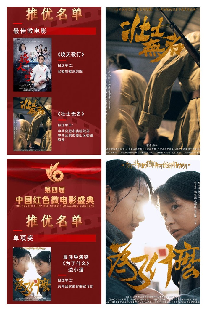 近日,在第四届中国红色微电影盛典中,我校师生参与拍摄的电影《为了什么》荣获最佳微电影(全国十佳)和最佳导演奖(全国唯一),《壮士无名》获最佳微电影(全国十佳)和最佳编剧奖(全国唯一)。
