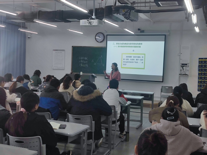 本次公开课的主讲教师是马克思主义学院教师杨婷婷,讲授内容为《马克思主义基本原理》课程的“资本主义经济制度的本质”。教学过程中,杨婷婷充分运用理论讲授、案例分析、视频教学、互动讨论等教学方法,既生动地讲解知识点又充分调动同学们的积极性,整体课堂氛围活跃有序。