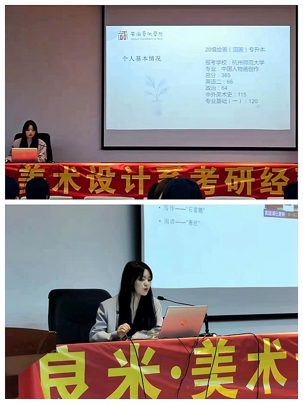 5月11日下午,美术设计系在美术楼一楼报告厅举办“良米·考研经验交流会”。交流会由陈禹竹、吴锜、陈俊哲和牛欣欣四位同学主讲。各年级有考研意向的学生积极参加。