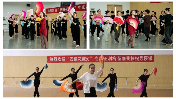 9月24至25日,舞蹈学院邀请娄楼、赵新盟、王利梅三位安徽花鼓灯专家走进舞蹈学院,讲授舞蹈学院特色课程《安徽花鼓灯风格组合课》。