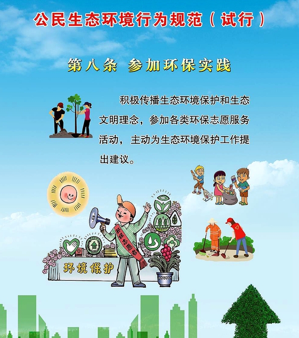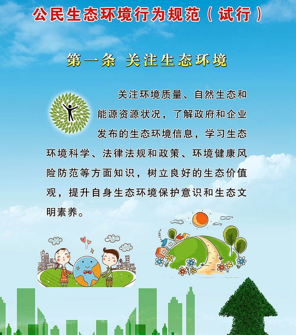 “公民十条”包括:关注生态环境、节约能源资源、践行绿色消费、选择低碳出行、分类投放垃圾、减少污染产生、呵护自然生态、参加环保实践、参与监督举报、共建美丽中国等十个方面。
