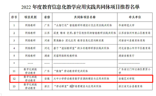 近日,教育部科学技术与信息化司公示2022年度教育信息化教学应用实践共同体项目名单,乐动网官网申报的项目《大中小学劳动教育数字资源的建设与应用共同体》成功入选,其中劳动教育类仅5项。