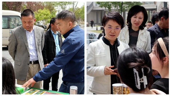 中午时分,学校食堂门口人头攒动、热闹非凡,来自金寨县竹根河村的食用油、大米、黑芝麻丸、黄精茶等农副产品受到广大师生的青睐。在场人员纷纷询问商品价格,扫码支付货款,选购自己心仪的农副产品。