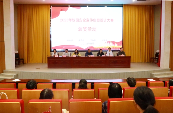 5月5日下午,学校在综合楼5楼报告厅举办校园安全宣传创意设计大赛颁奖活动。保卫处处长陈雪峰、团委书记龙源、学生处副处长高英娟、戏剧学院党总支副书记冯传胜、传媒学院党总支副书记曹磊、美术学院党总支副书记李卫国、团委挂职副书记孙静参加颁奖。