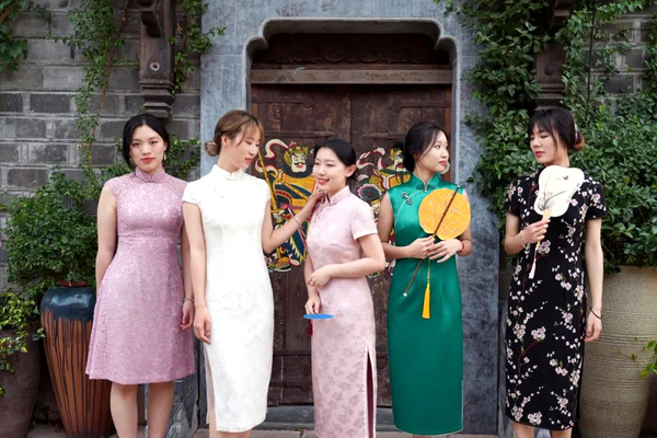 除了丰富的演出活动之外,“音乐轻骑兵”文艺小分队的部分同学还担任了非遗定制旗袍模特,成为罍街巷口一道靓丽的风景线。