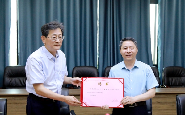 6月9日上午,客座教授丁和根聘任仪式在播音楼第一会议室举行。校行政负责人沈端良出席聘任仪式并向丁和根颁发学校客座教授聘任证书。