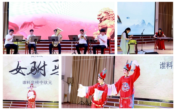 本次演出由音乐学院、戏剧学院师生共同演绎,节目有男声独唱《我曾与你相遇》、黄梅戏经典选段《女驸马》、古筝合奏《行者》、铜管五重奏《我爱你中国》、女生独唱《星辰大海》、男女声二重唱《国家》。动人的乐章感染了祁门一中的师生们。