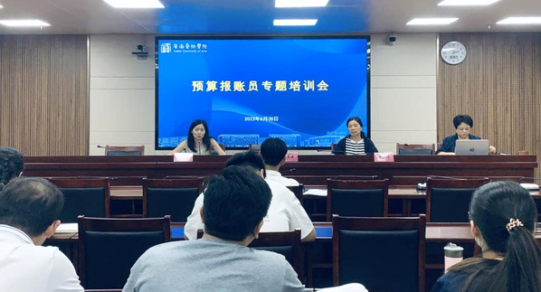 为实现教职工在报销中“少跑路”,解决财务报销中遇到的各类问题,6月28日下午,财务处在综合楼717会议室召开预算报账员培训会议。财务处处长张志云、副处长丁永红、校聘财务专家王琦参加会议。